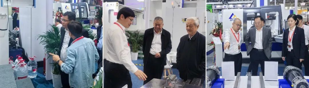 集團(tuán)展位吸引了眾多行業(yè)專(zhuān)家、企業(yè)代表和專(zhuān)業(yè)觀眾駐足觀展交流。國(guó)家工業(yè)和信息化部裝備工業(yè)一司副司長(zhǎng)汪宏,工業(yè)母機(jī)創(chuàng)新院專(zhuān)家咨詢(xún)委主任、原工信部裝備一司一級(jí)巡視員苗長(zhǎng)興,國(guó)家重大技術(shù)裝備專(zhuān)家委員會(huì)委員、原集團(tuán)副院長(zhǎng)屈賢明,中國(guó)機(jī)械制造工藝協(xié)會(huì)理事長(zhǎng)、原集團(tuán)總經(jīng)理王西峰分別蒞臨展位,充分肯定了集團(tuán)在高端精密機(jī)床及核心功能部件方面的成績(jī),希望集團(tuán)加快研發(fā)步伐,創(chuàng)新對(duì)接形式,深入推進(jìn)工業(yè)母機(jī)在攻關(guān)、制造、應(yīng)用上實(shí)現(xiàn)全鏈條突圍、高質(zhì)量發(fā)展,在國(guó)家現(xiàn)代化產(chǎn)業(yè)體系、產(chǎn)業(yè)發(fā)展韌性和安全、科技創(chuàng)新體系中發(fā)揮更大作用。