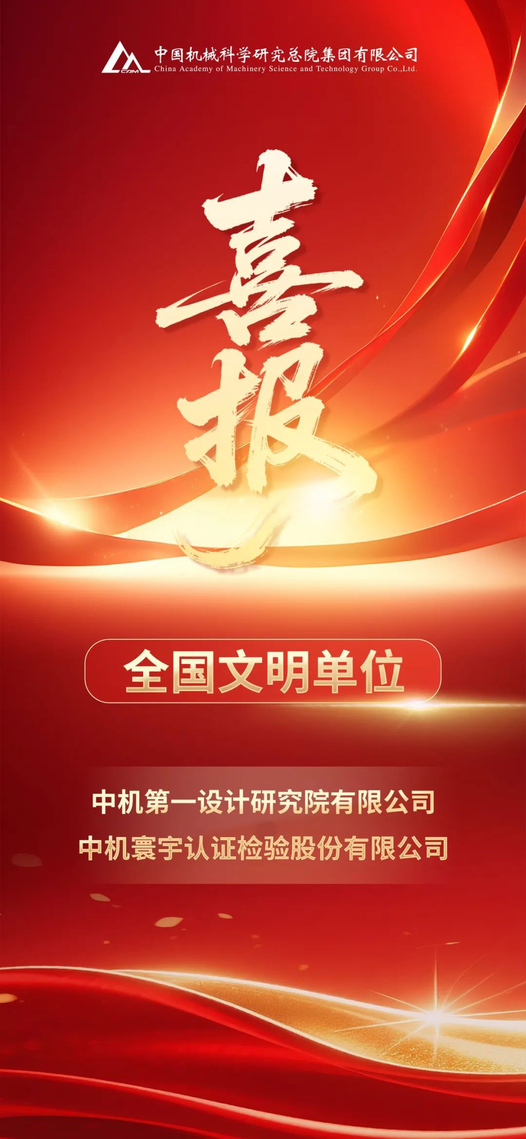 全國(guó)精神文明建設(shè)表彰大會(huì)5月23日在京召開。會(huì)上傳達(dá)習(xí)近平總書記近日對(duì)精神文明建設(shè)工作作出的重要指示,并宣讀表彰決定。中國(guó)機(jī)械總院中機(jī)第一設(shè)計(jì)研究院有限公司、中機(jī)寰宇認(rèn)證檢驗(yàn)股份有限公司2家單位被授予第七屆“全國(guó)文明單位”榮譽(yù)稱號(hào)。